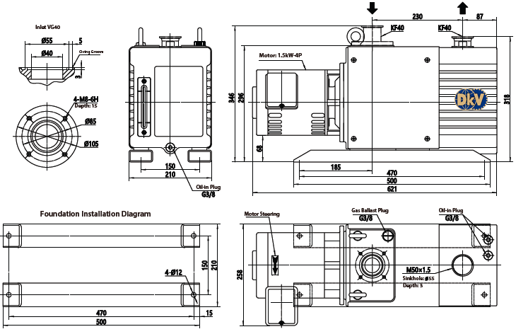 - Bơm chân không Baosi DRV40 sử dụng dầu bôi trơn có dung tích 2.8 lít (Baosi chỉ định sử dụng dầu BOS68 | Daphne super VAC – ACE 68 do hãng Idemitsu | Japan sản xuất), có độ bền cao, chi phí bảo dưỡng, sửa chữa thấp. Size cổ hút/cổ xả: KF 40 | KF 40 (option: KF25 | KF25). Để hạn chế dầu thoát ra ngoài, Baosi khuyến cáo lên sử dụng lọc tách dầu Baosi BSF30B.