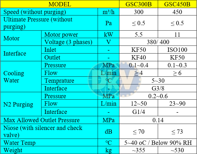 BƠM CHÂN KHÔNG KHÔ TRỤC VÍT BAOSI GSC450B | BAOSI DRY SCREW VACUUM PUMP GSC450B | 450 m3/h | 5 x 10-3 mbar