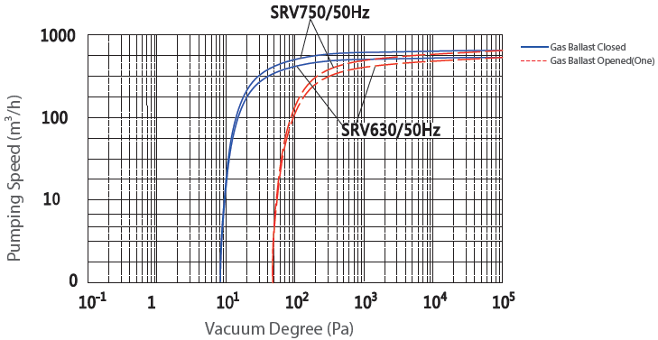 - Bơm chân không Baosi SRV630A, Baosi single stage oil rotary vane vacuum pumps SRV630A thuộc dạng bơm hút chân không vòng dầu (oil-flooded), cánh gạt, 1 cấp, có lưu lượng: 630 m3/h, độ chân không tuyệt đối: 8 x 10-2 mbar (8 Pa) khi đóng chấn lưu khí Gas ballast, 0.7 mbar (70 Pa) khi mở chấn lưu khí Gas ballast nấc 1, 2 mbar (200 Pa) khi mở chấn lưu khí Gas ballast nấc 2, chuyên dùng để hút chân không trong công nghiệp.