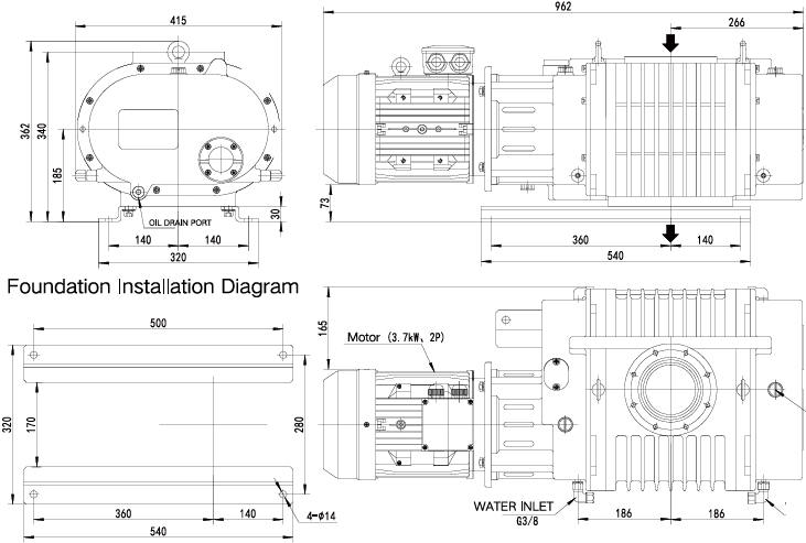 - Bơm tăng áp chân không Baosi BSJ300L có độ ồn trung bình: 68 dB(A), sử dụng 3 phase 3.7 kW/380 - 400 V/50Hz/3ph (cấp bảo vệ IP54.ISO F). Size cổ hút/cổ xả: VG100 | VF80. Dung tích dầu bôi trơn: 2 lít.