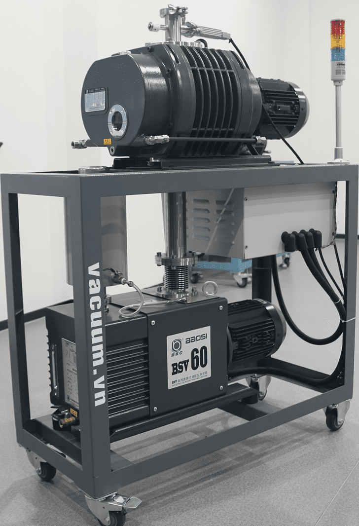 - Trong đó bơm tăng áp chân không BSJ150L có tác dụng tăng tốc độ hút và giảm độ chân không nhanh chóng. Tạo ra môi trường đầu vào sạch và thuận lợi cho bơm thứ cấp vòng dầu DRV60 hút ổn định.