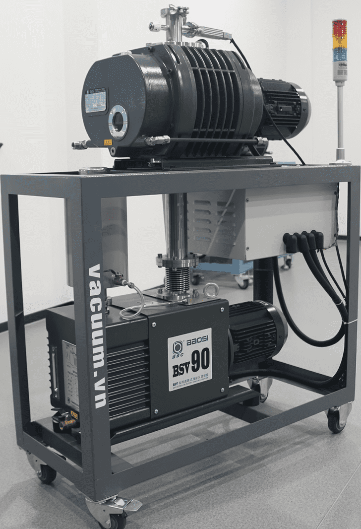 - Trong đó bơm tăng áp chân không BSJ150L có tác dụng tăng tốc độ hút và giảm độ chân không nhanh chóng. Tạo ra môi trường đầu vào sạch và thuận lợi cho bơm thứ cấp vòng dầu DRV90 hút ổn định.