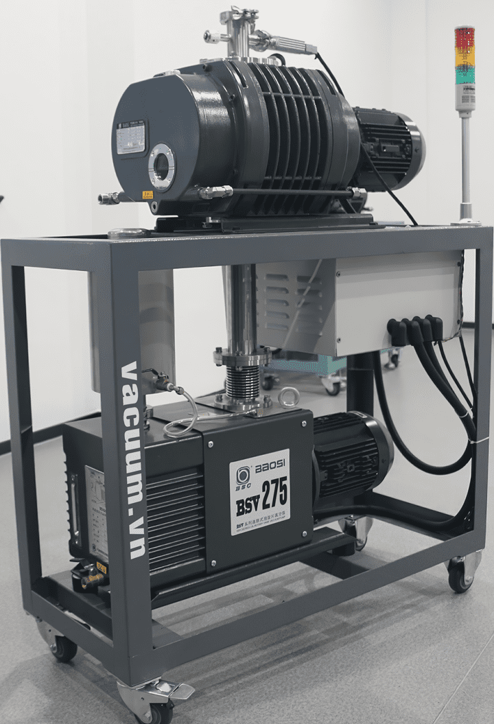 - Trong đó bơm tăng áp chân không BSJ300L có tác dụng tăng tốc độ hút và giảm độ chân không nhanh chóng. Tạo ra môi trường đầu vào sạch và thuận lợi cho bơm thứ cấp vòng dầu DRV275 hút ổn định.