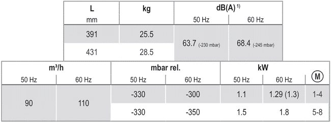 - Bơm chân không Becker SV 200/2 sử dụng động cơ: 1.1 - 1.5 kW 200-400V/50Hz/1-3ph, tốc độ vòng quay max: 2.870 - 2.900 rpm, độ ồn tối đa: 65.6 dBA.