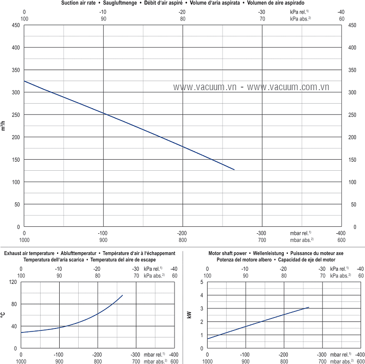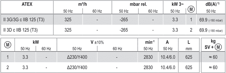 - Bơm chân không Becker SV 300/1 ATEX sử dụng động cơ: 3.3 kW 200-400V/50Hz/1-3ph, tốc độ vòng quay max: 2.830 rpm, độ ồn tối đa: 69.9 dBA.