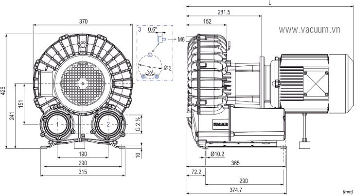 - Bơm chân không Becker SV 300/1 ATEX có cổ hút/cổ xả tiêu chuẩn G 2.1/2", cho phép đấu nối nhanh với các thiết bị bên ngoài.