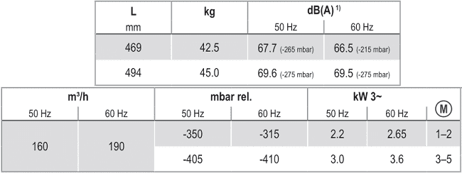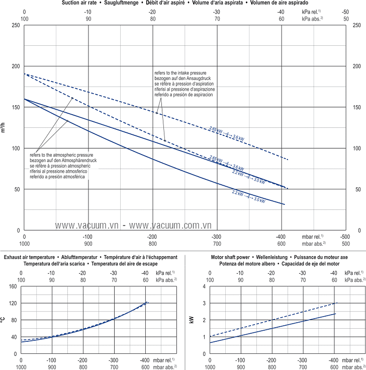- Bơm chân không Becker SV 300/2 sử dụng động cơ: 2.65 - 3.6 kW 200-400V/50Hz/1-3ph, tốc độ vòng quay max: 2.870 - 2.900 rpm, độ ồn tối đa: 67.7 - 69.6 dBA.