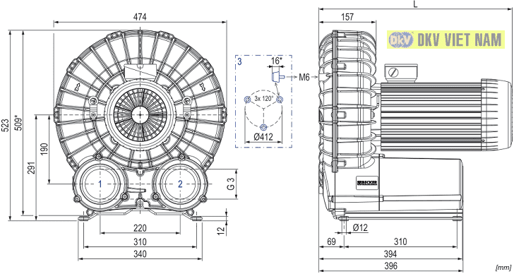 - Kích thước tổng thể của bơm chân không Becker SV 500/2 (dài x rộng x cao): 530 x 474 x 523 mm. Trọng lượng: 67.5 kg.