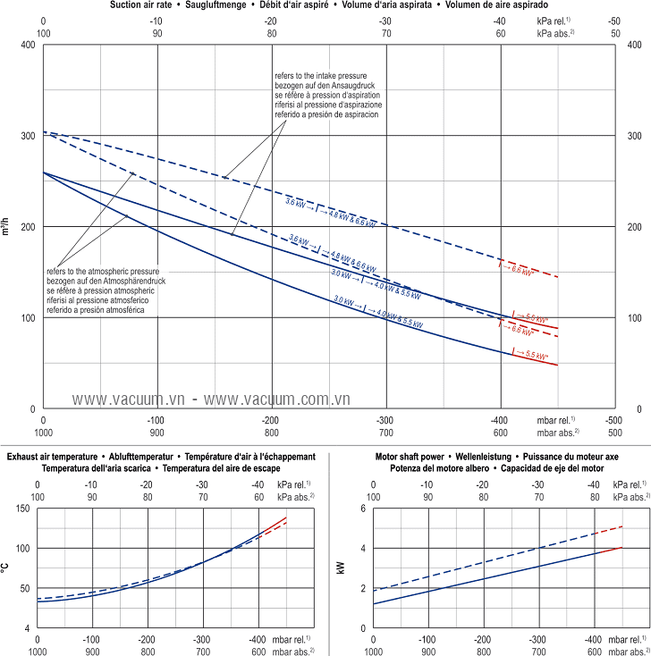 - Bơm chân không Becker SV 500/2 sử dụng động cơ: 3 - 5.5 kW 200-400V/50Hz/1-3ph, tốc độ vòng quay max: 2.930 - 2.940 rpm, độ ồn tối đa: 68.9 - 69.5 dBA.