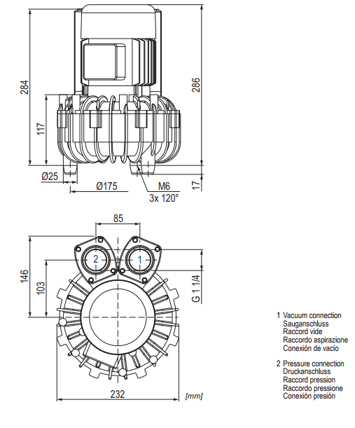 - Option: động cơ 3 phase 0.37 kW hoặc 1 phase 0.37 kW (cấp bảo vệ IP55.ISO F)