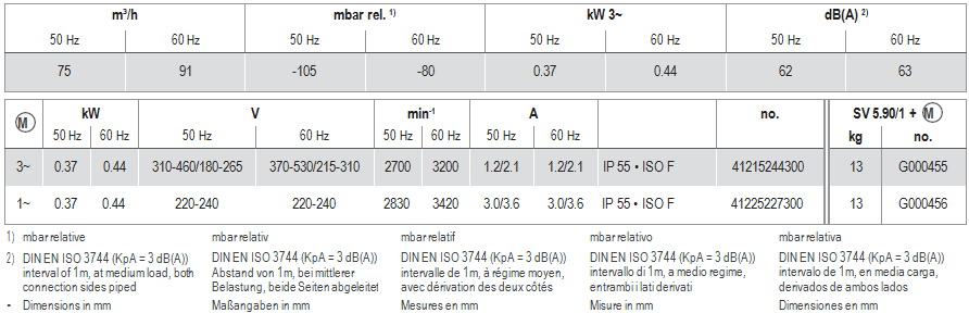 - Máy thổi chân không Becker SV 5.90/, Becker slide channel vacuum pump sv 5.90/1 là loại bơm chân không 1 cấp, có lưu lượng thổi max: 75 m3/h, độ chân không max: -105 mbar.