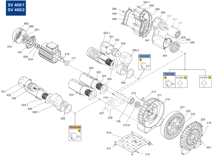 - Máy thổi khí chân không Becker SV 400/1 sử dụng động cơ: 3/6.6 kW 200-400V/50Hz/1-3ph, tốc độ vòng quay max: 2.940 rpm, độ ồn tối đa: 71.6 - 76.8 dBA.