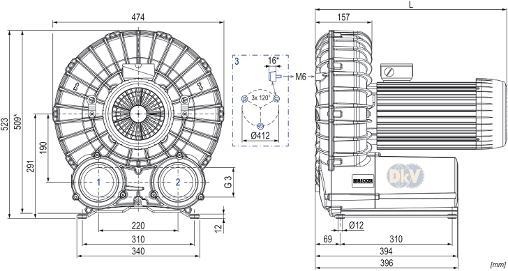 MÁY THỔI KHÍ CHÂN KHÔNG BECKER SV 500/2 | BECKER SIDE CHANNEL BLOWERS SV 500/2 | 260 m3/h | +480 mbar