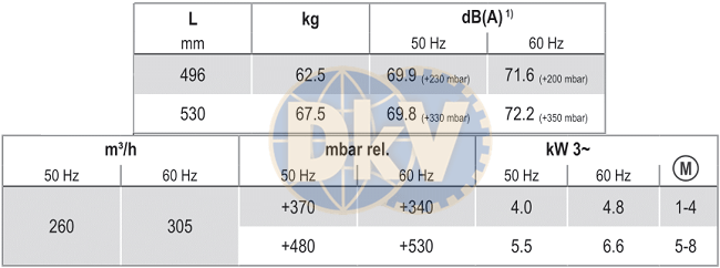 - Máy thổi khí chân không Becker SV 500/2 sử dụng động cơ: 4/5.5 kW 200-400V/50Hz/1-3ph, tốc độ vòng quay max: 2.930 rpm, độ ồn tối đa: 69.8 - 69.9 dBA.
