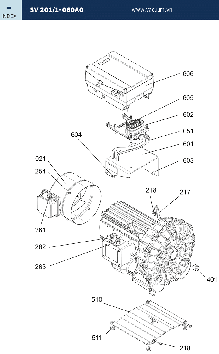 - Máy thổi khí chân không Becker VARIAIR SV 201/1 sử dụng động cơ: 1.1/2.65 kW 200-400V/50Hz/1-3ph, tốc độ vòng quay max: 2.870 - 2.930 rpm, độ ồn tối đa: 77.7 dBA.