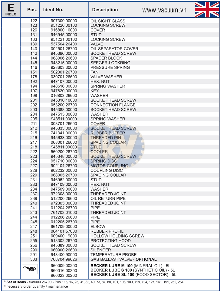- Ngoài cung cấp bơm chân không Beker U 4.630 F/K và các sản phẩm (dầu chân không, lọc chân không, cánh gạt và phụ tùng Becker) luôn có sẵn, chúng tôi còn có sẵn các loại bơm chân không tiêu chuẩn, chất lượng thấp hơn của WonVac | Korea, Woosung | Korea, DooVac | Korea hoặc giá rẻ của Value | China để thỏa mãn sự lựa chọn thêm của khách hàng, phù hợp với tiêu chí của khách hàng đặt ra.