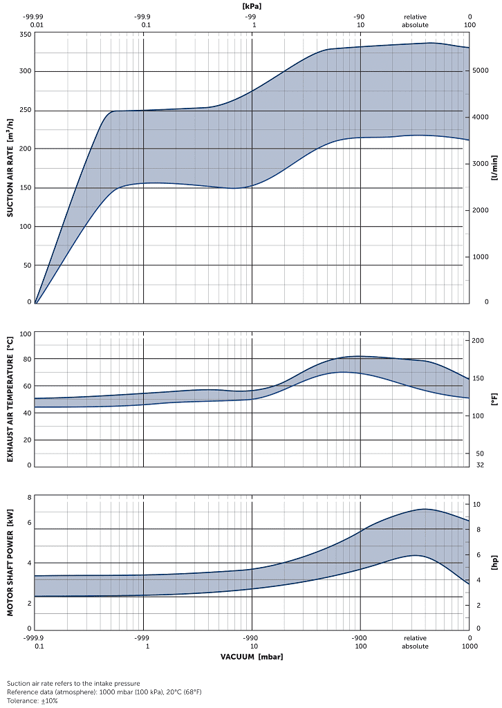 - Bơm chân không Becker Variair U 5.101 có độ ồn trung bình: 65 dB(A), sử dụng động cơ 3 phase 4 kW/330 - 440 V/50Hz/3ph (cấp bảo vệ IP55.ISO F)
