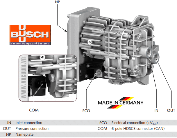 - Bơm chân không Busch MINK MA 0018 A được sản xuất và chế tạo tại Nhà máy của Busch - Maulburg - Đức (ngoài ra còn có các dây chuyền sản xuất tại Thụy Sỹ, Anh, Séc, Hàn Quốc và Mỹ. DKV VIET NAM nhập khẩu trực tiếp từ Đức. Made in Germany.