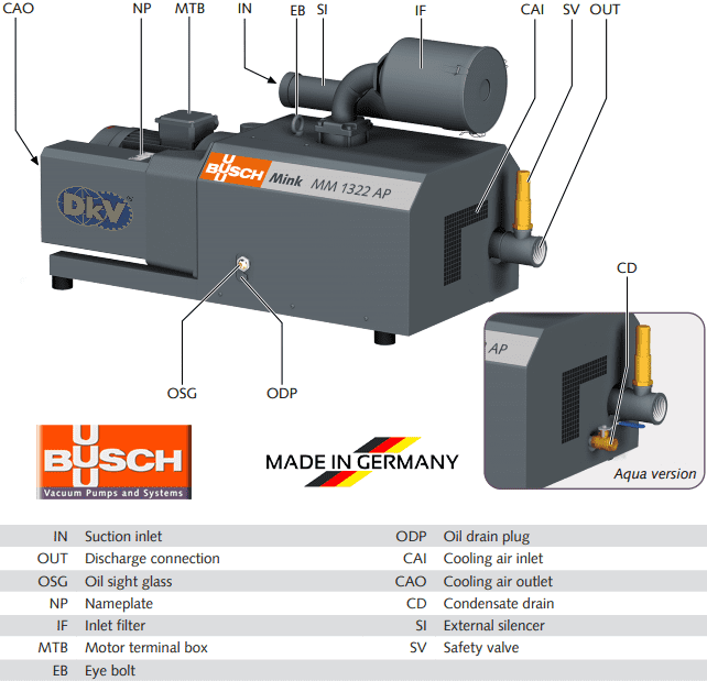 - Bơm chân không Busch MINK MM 1202 AP được sản xuất và chế tạo tại Nhà máy của Busch - Maulburg - Đức (ngoài ra còn có các dây chuyền sản xuất tại Thụy Sỹ, Anh, Séc, Hàn Quốc và Mỹ. DKV VIET NAM nhập khẩu trực tiếp từ Đức. Made in Germany.