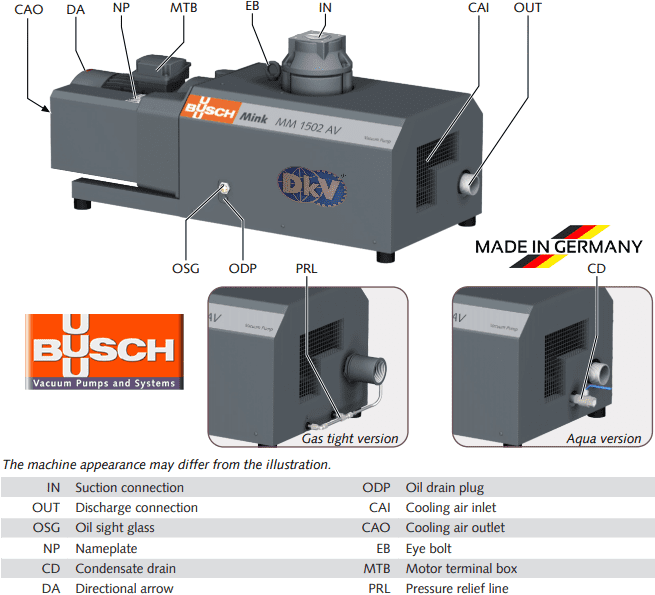 - Bơm chân không Busch MINK MM 1402 AV được sản xuất và chế tạo tại Nhà máy của Busch - Maulburg - Đức (ngoài ra còn có các dây chuyền sản xuất tại Thụy Sỹ, Anh, Séc, Hàn Quốc và Mỹ. DKV VIET NAM nhập khẩu trực tiếp từ Đức. Made in Germany.