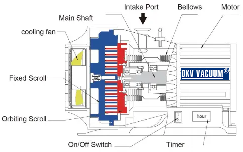 - Do bơm chân không DKV IDSP16 thuộc dạng bơm chân không khô, không có chất bôi trơn (dầu mỡ) lên đảm bảo chân không hoàn toàn sạch và khô.