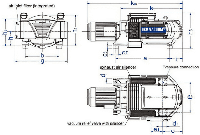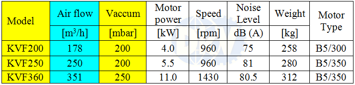 - Bơm chân không DKV KVF 360 có độ ồn trung bình: 80.5 dB(A), sử dụng động cơ 3 phase 11 kW/380-400V/50-60Hz (cấp bảo vệ IP55.ISO F), tốc độ vòng quay động cơ: 1.430 vòng/phút.