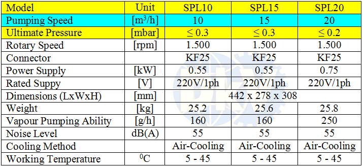 - Bơm chân không DKV SPL15 hoạt động hiệu quả ở nhiệt độ phòng: 5 - 450C.