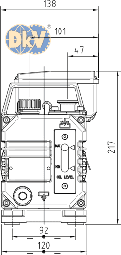 - Bơm chân không DVP DB 2D trang bị khe thăm dầu dọc đầu bơm, dễ quan sát tình trạng dầu, sử dụng dầu bôi trơn có dung tích 0.26 - 0.37 lít (DVP chỉ định sử dụng dầu SW-60).
