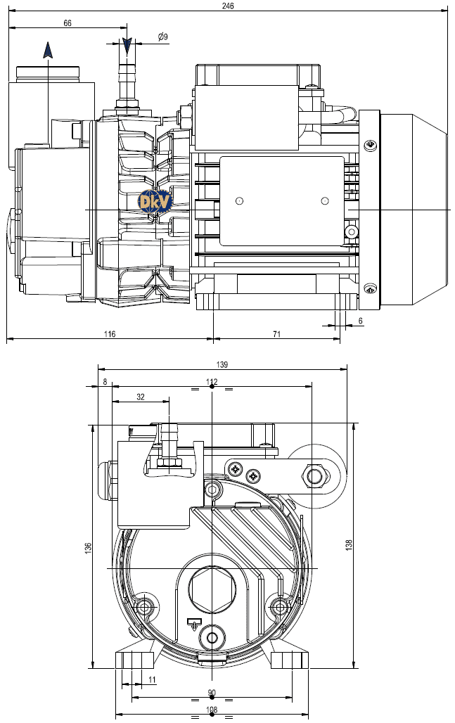 - Quy cách của bơm chân không DVP LC 4: trọng lượng: 5.4 kg, kích thước bao (dài x rộng x cao): 246 x 139 x 138 mm.