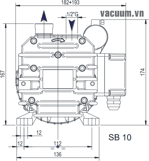 - Size kết nối vào/ra bơm chân không DVP SB 10 : 1/2”G.