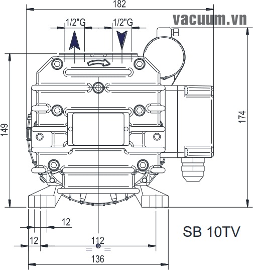 - Size kết nối vào/ra bơm chân không DVP SB 10TV: 1/2”G / 1/2”G.