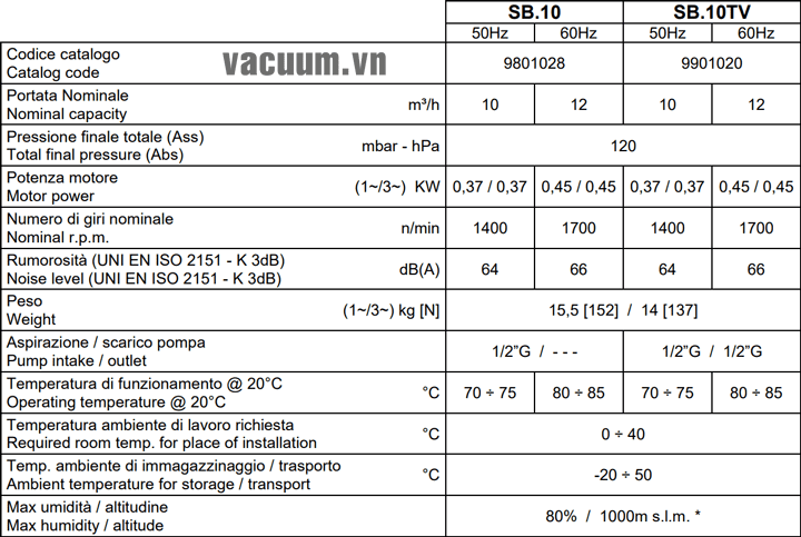 - Bơm chân không DVP SB 10TV, bơm hút chân không DVP SB 10TV, DVP oil-free rotary vane vacuum pumps SB 10TV là loại bơm chân không không dầu có lưu lượng: 12 m3/h, độ chân không đạt 120 mbar chuyên dùng để hút chân không trong công nghiệp.