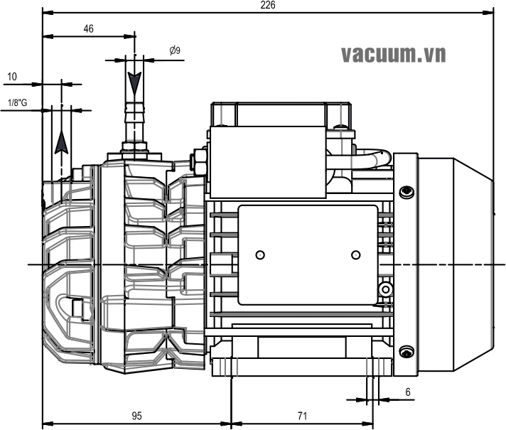 - Quy cách bơm chân không DVP SC 5 (dài x rộng x cao):226 x 139 x 138 mm, trọng lượng: 5.4 kg. Nhiệt độ môi trường đặt bơm chân không DVP SC 5 hoạt động lý tưởng: 0 - 400C.