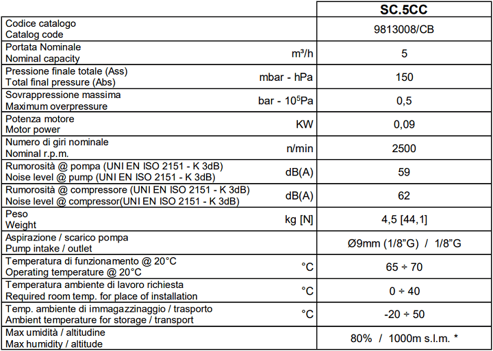 - Bơm chân không DVP SC 5CC sử dụng động cơ: 0.09 kW, điện áp 230V/50Hz/1ph hoặc 380V/50Hz/3ph, tốc độ vòng quay động cơ max: 2.500 vòng/phút.
