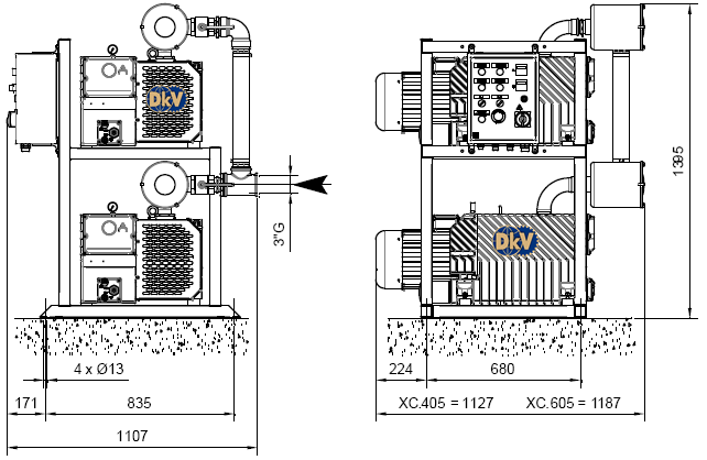 - Size kết nối vào/ra bơm chân không DVP XC 405: 2-1/2"G.