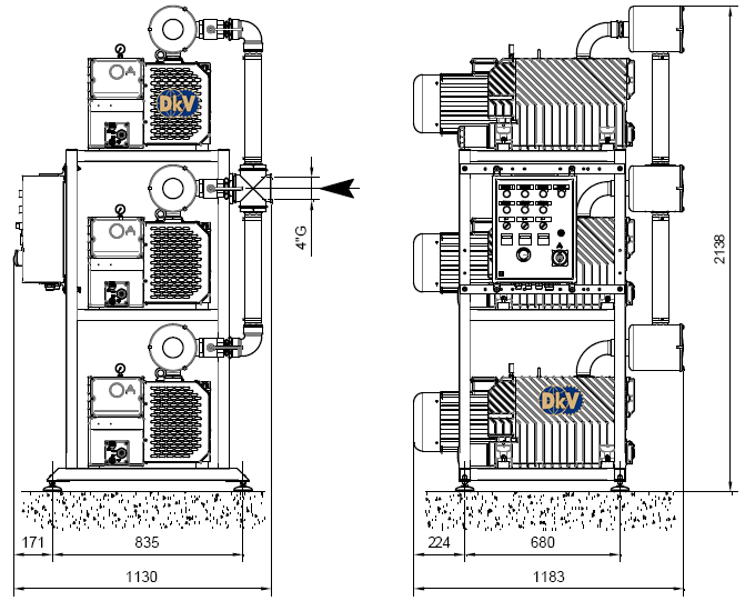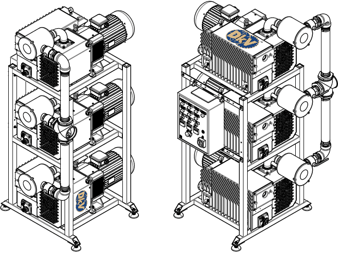Bơm chân không DVP XC 905 bản chất là sự ghép 3 của 3 bơm chân không vòng dầu DVP LC 305 (305 m3/h, 0.5 mbar)