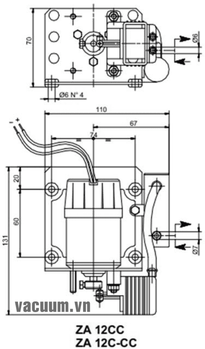 - Bơm chân không DVP ZA 12CC sử dụng động cơ: 30W, điện áp 12 VDC, hoạt động êm ái, có độ ồn max: 58 dB(A) tại 50 Hz.