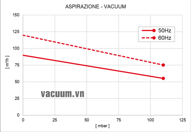 - Máy thổi khí chân không DVP TSL 100 sử dụng động cơ: 0.55 kW điện áp 230V/50Hz/1ph, độ ồn tối đa: 55 dB(A).