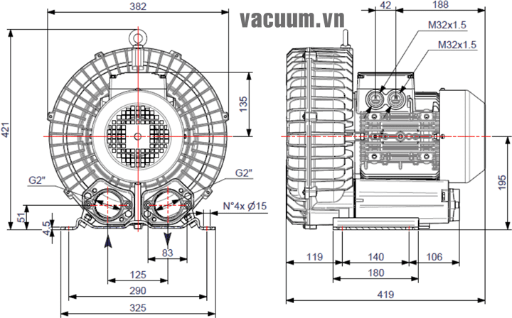 MÁY THỔI KHÍ CHÂN KHÔNG DVP TSL 410-1 | DVP BLOWERS PUMP TSL 410-1