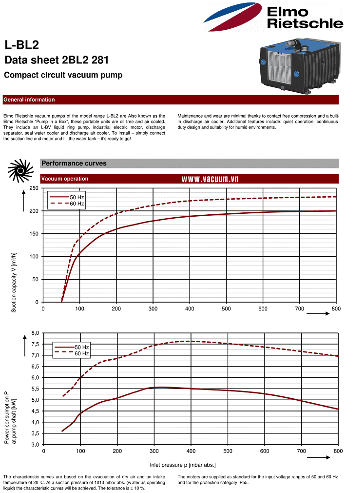 - Bơm chân không Elmo Rietschle 2BL2 281 có độ ồn max: 73 dB(A)