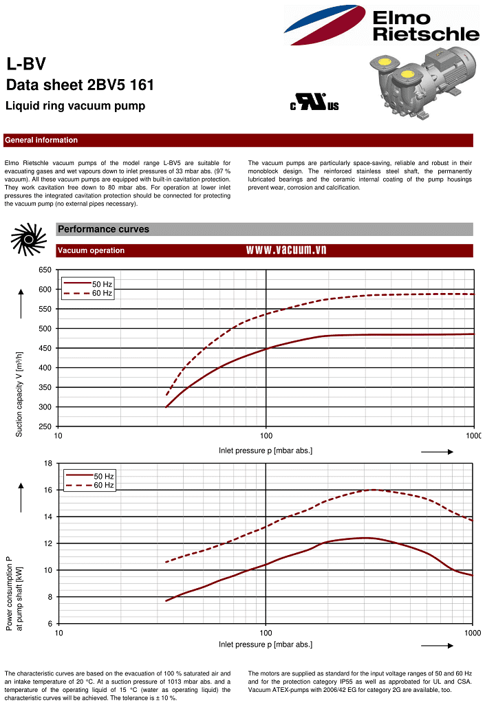 - Bơm chân không Elmo Rietschle 2BV5 161 có độ ồn max: 74 dB(A)