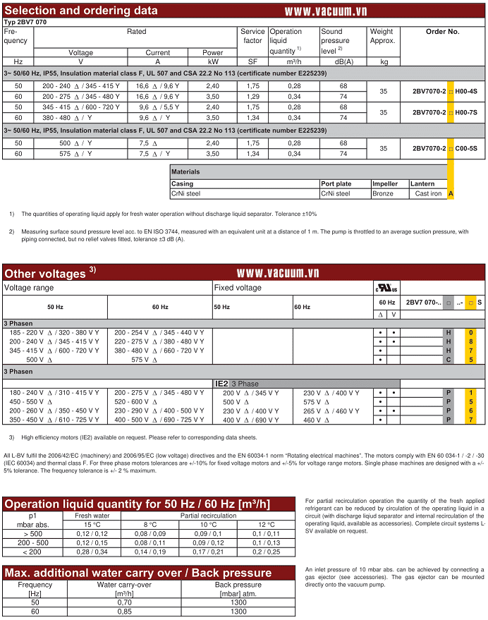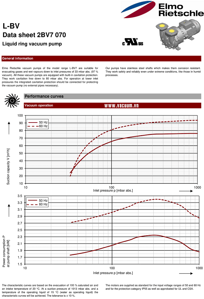 - Bơm chân không Elmo Rietschle 2BV2 070 có độ ồn max: 68 dB(A).