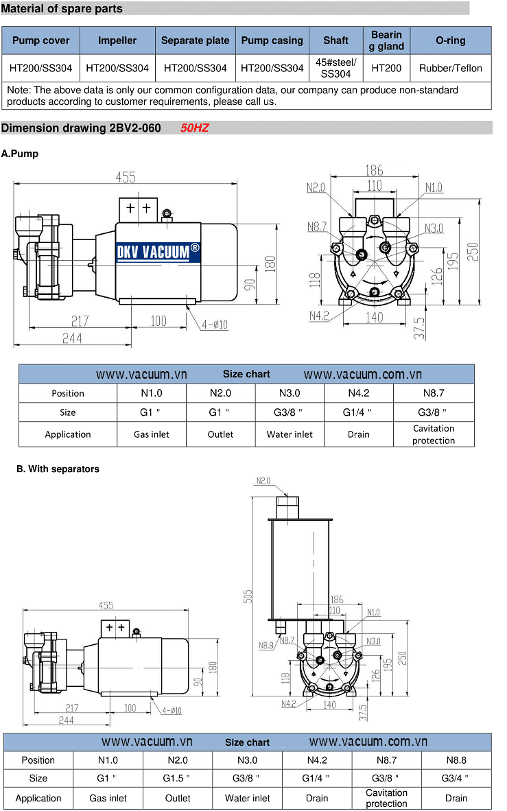 - Ngoài cung cấp bơm chân không vòng nước EVP 2BV2-060 và các phụ tùng đi kèm, chúng tôi còn cung cấp các loại bơm chân không vòng nước tiêu chuẩn, chất lượng cao hơn của Hanchang/Korea, Shamshin/Korea để thỏa mãn sự lựa chọn thêm của khách hàng, phù hợp với tiêu chí của khách hàng đặt ra.