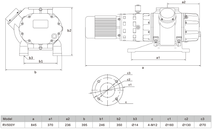 - Bơm tăng áp chân không Hokaido RV500Y có độ ồn trung bình: 68 dB(A), sử dụng động cơ 3 phase 2.2 kW/380 - 400 V/50Hz/3ph (cấp bảo vệ IP54.ISO F), tốc độ vòng quay động cơ: 3.000 rpm. Đường kính trong cổ hút/cổ xả: 100 mm | 100 mm. Dung tích dầu bôi trơn: 1.6 lít.
