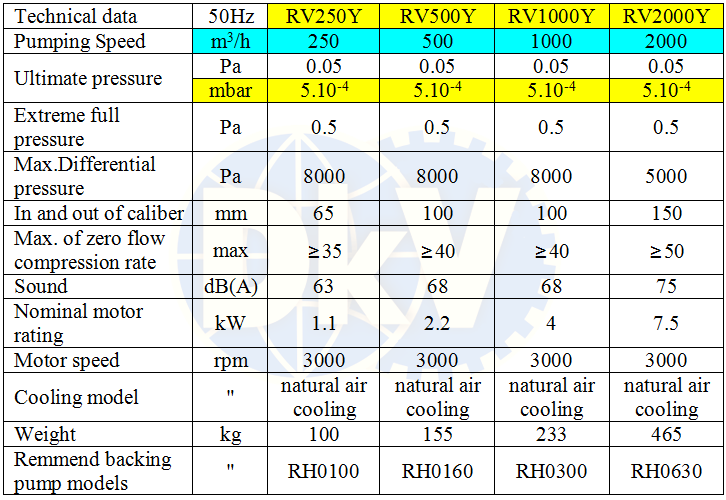 - Bơm tăng áp chân không Hokaido RV500Y làm mát bằng khí tự nhiên, với mức chênh áp (vào/ra): 8.000 mbar (8 bar).