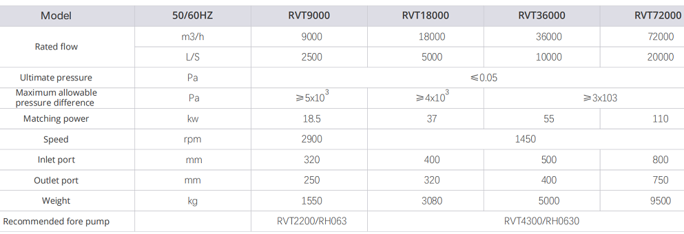 - Bơm tăng áp chân không Hokaido RVT36000 không sử dụng các chất bôi trơn nội bộ, ít có dòng chảy ngược của dầu chân không, tạo ra môi trường chân không sạch sẽ.