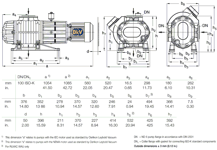- Bơm tăng áp chân không Leybold RUVAC WA 1001 có đầu kết nối khí vào/ra: DN 100 PN6.