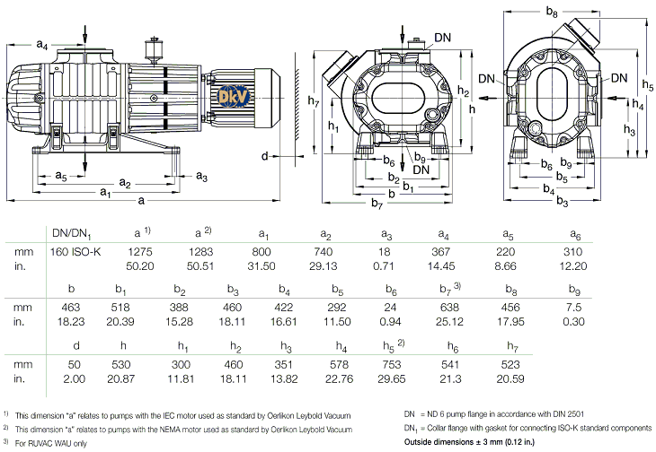 - Bơm tăng áp chân không Leybold RUVAC WAU 2001 có đầu kết nối khí vào/ra: DN 160 PN6.