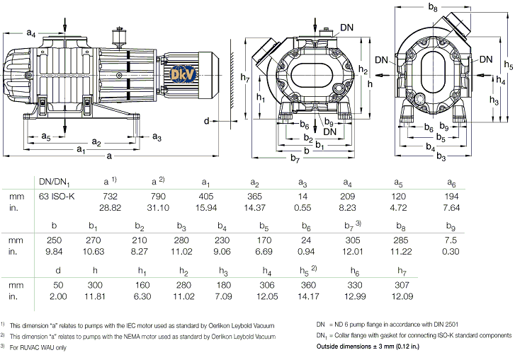 - Bơm tăng áp chân không Leybold RUVAC WAU 251 có đầu kết nối khí vào/ra: DN 63 PN6.