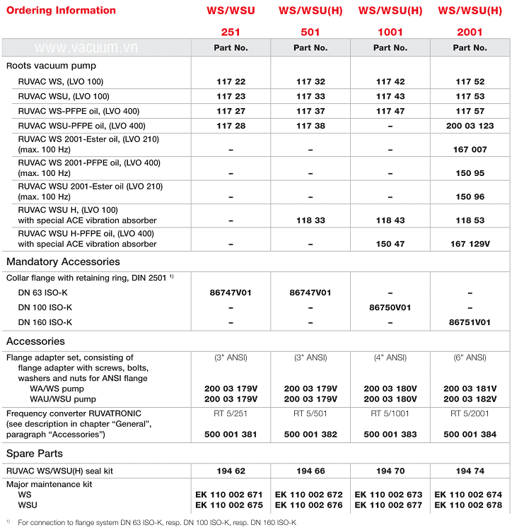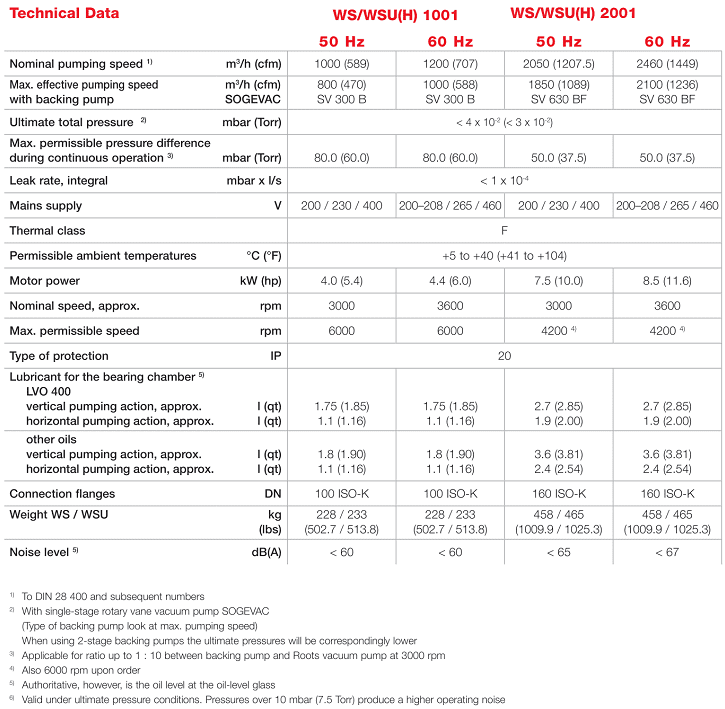- Bơm tăng áp chân không Leybold RUVAC WSU 1001, Leybold roots booster pump RUVAC WSU 1001 là loại bơm tăng áp cỡ lớn, lưu lượng max: 1000 m3/h, phổ dụng trong công nghiệp. Bơm tăng áp chân không Leybold RUVAC WSU 1001 có độ chân không max: 80 mbar.